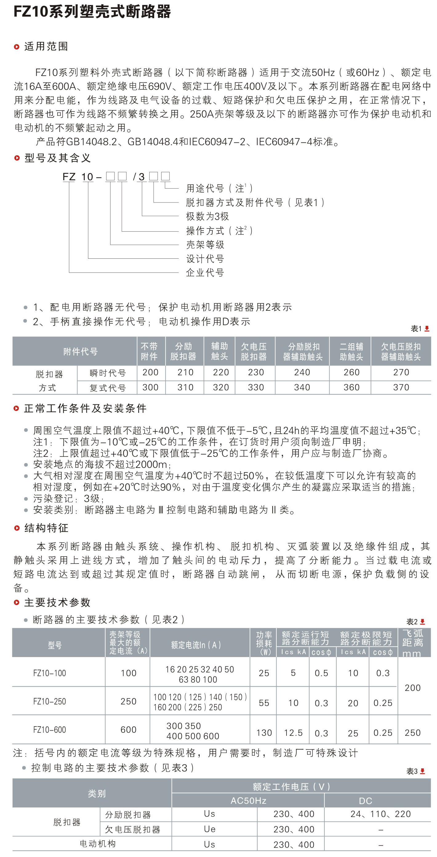 名称:FZ10系列塑壳式断路器