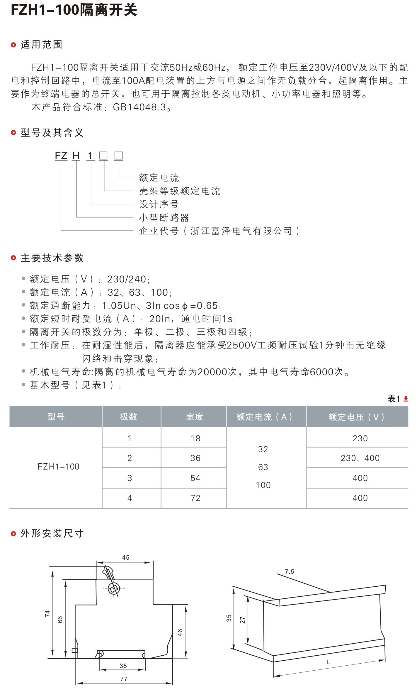 类别:隔离开关 插座