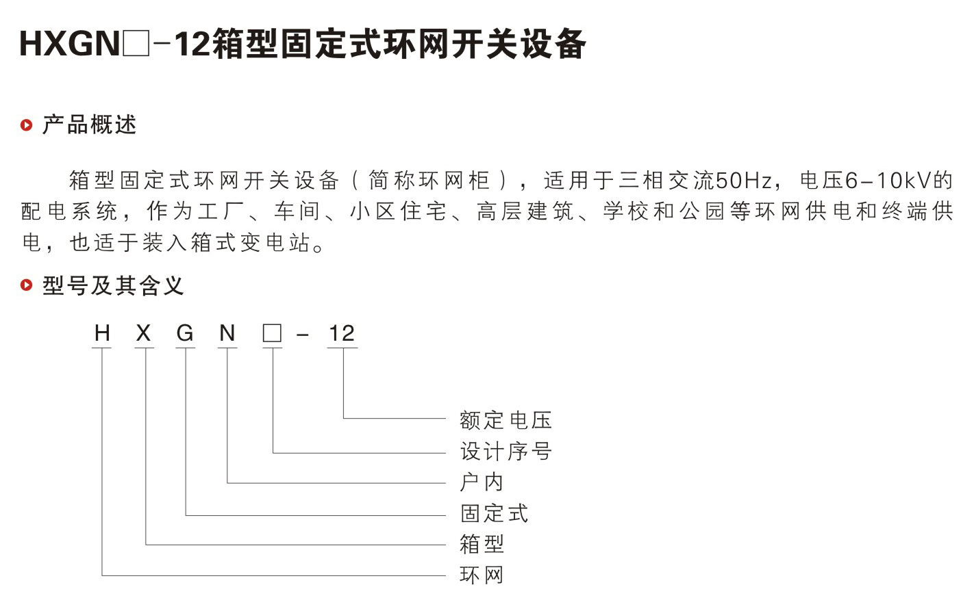 名称:HXGN口一12箱型固定式环网开关设备