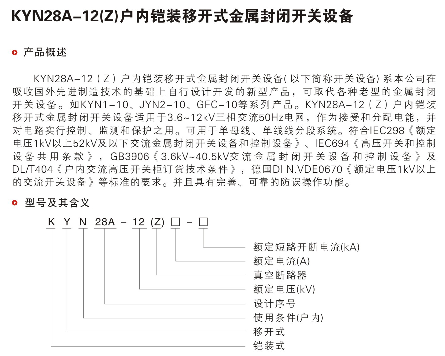 名称:KYN28A一12Z户内铠装移开式金属封闭开关设备