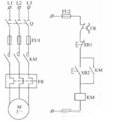 二次回路中:SB2按下后把电送到KM线圈,KM辅助触点接通后也为KM线圈供电,这样就形成了两路供电。