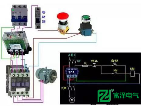 若没有接触器的参与,即没有图中所有标有KM的地方,则SB2按下时回路通电,松开则断电(常开按钮特点,启动按钮都使用常开按钮)。因此我们接入了接触器线圈,并且把常开触点和SB2并联。由此就产生了按下SB2时线圈瞬间通电从而闭合常开触点,以保证松开SB2时回路依然有电的效果。